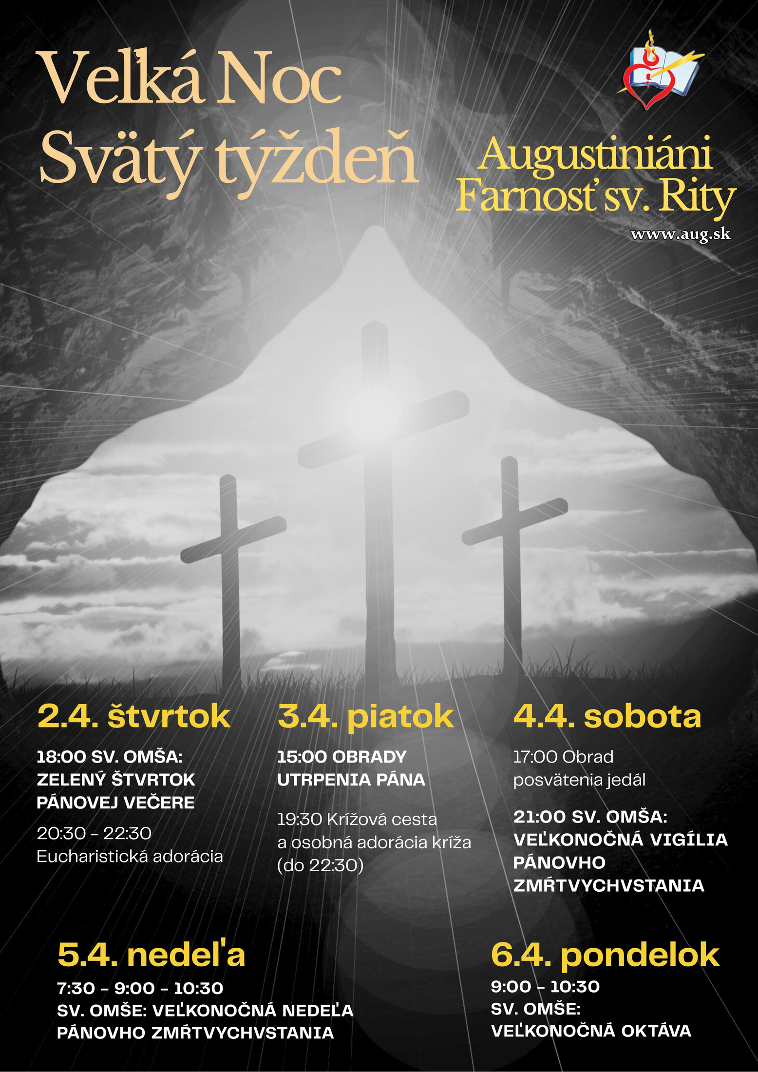 Milí veriaci, drahí bratia a sestry, pozývame vás prežiť spolu s nami slíávenie veľkonočného tajomstva ukrižovania a zmŕtvychvstania nášho Pána Ježiša Krista. Najväčšie a najdôležitejšie sviatky nášho liturgického roka a života každého kresťana.